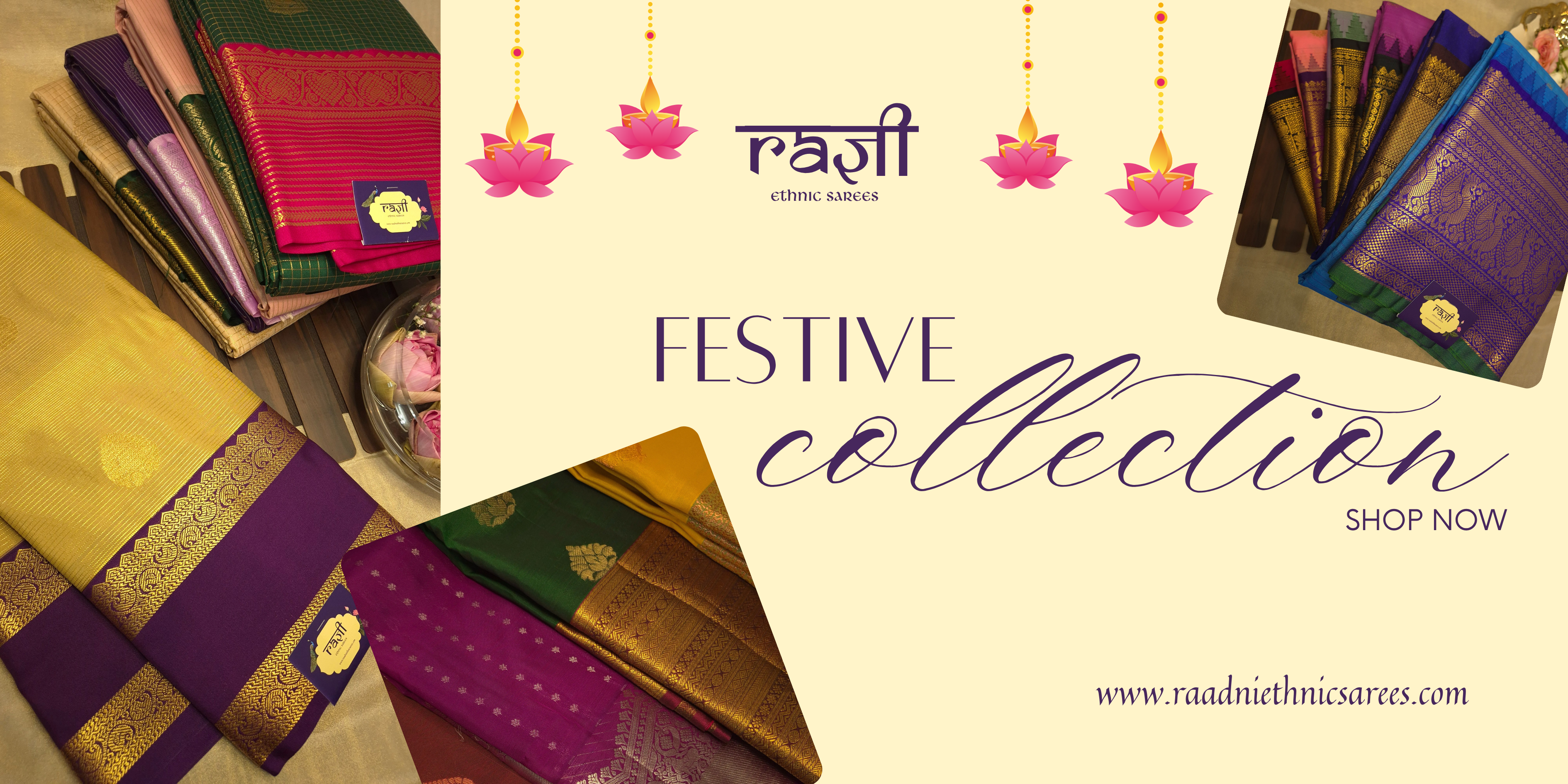 Floral Silver Zari Light Mehendi Colour Semi Silk Saree with Dark Purple Wine Broad Golden Zari Border