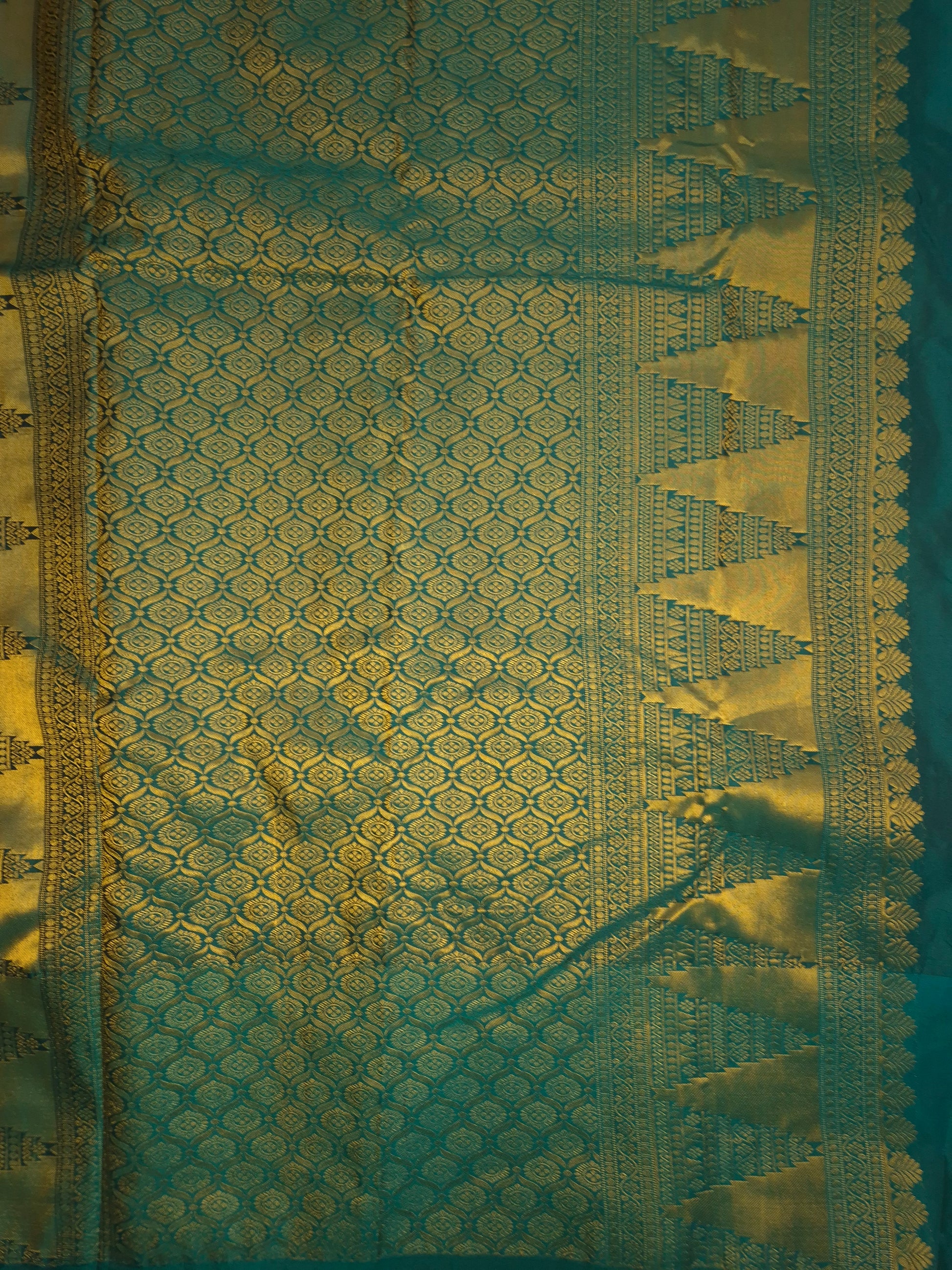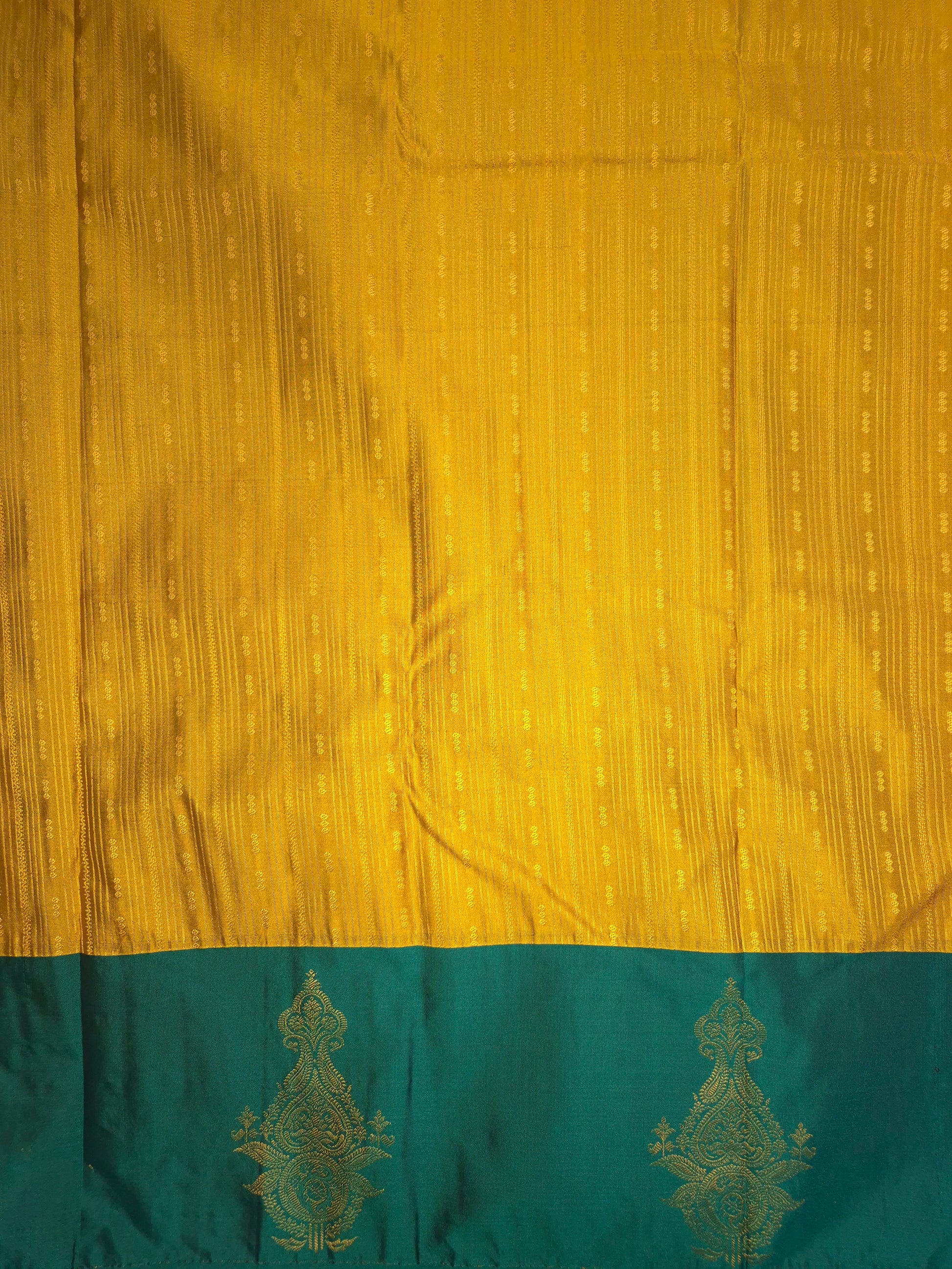 Golden Yellow Kanchipuram Silk Saree with Rama green Border and Golden Zari
