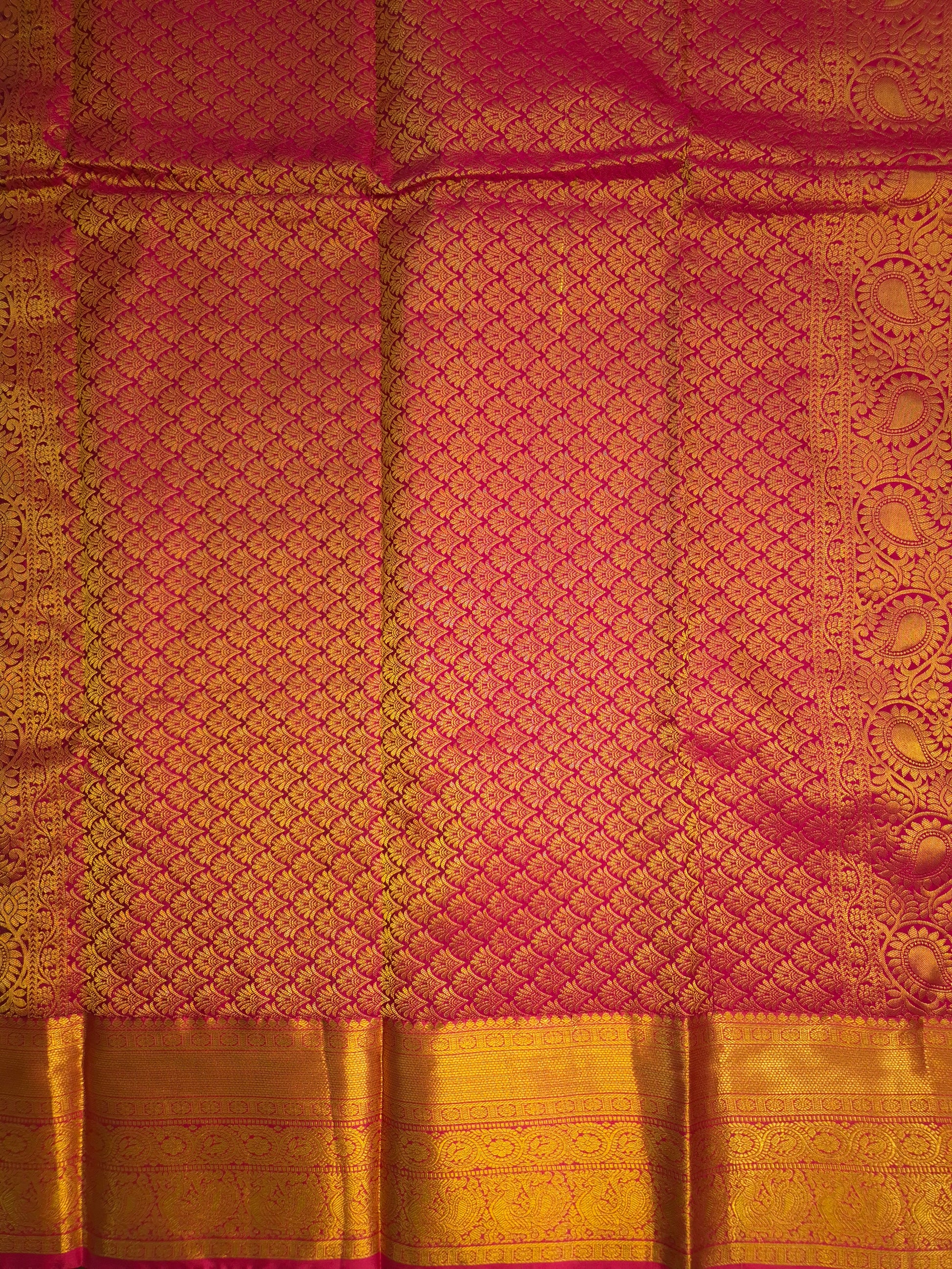 Light Green Kanchipuram Silk Saree with Rani Pink Border and Golden Zari