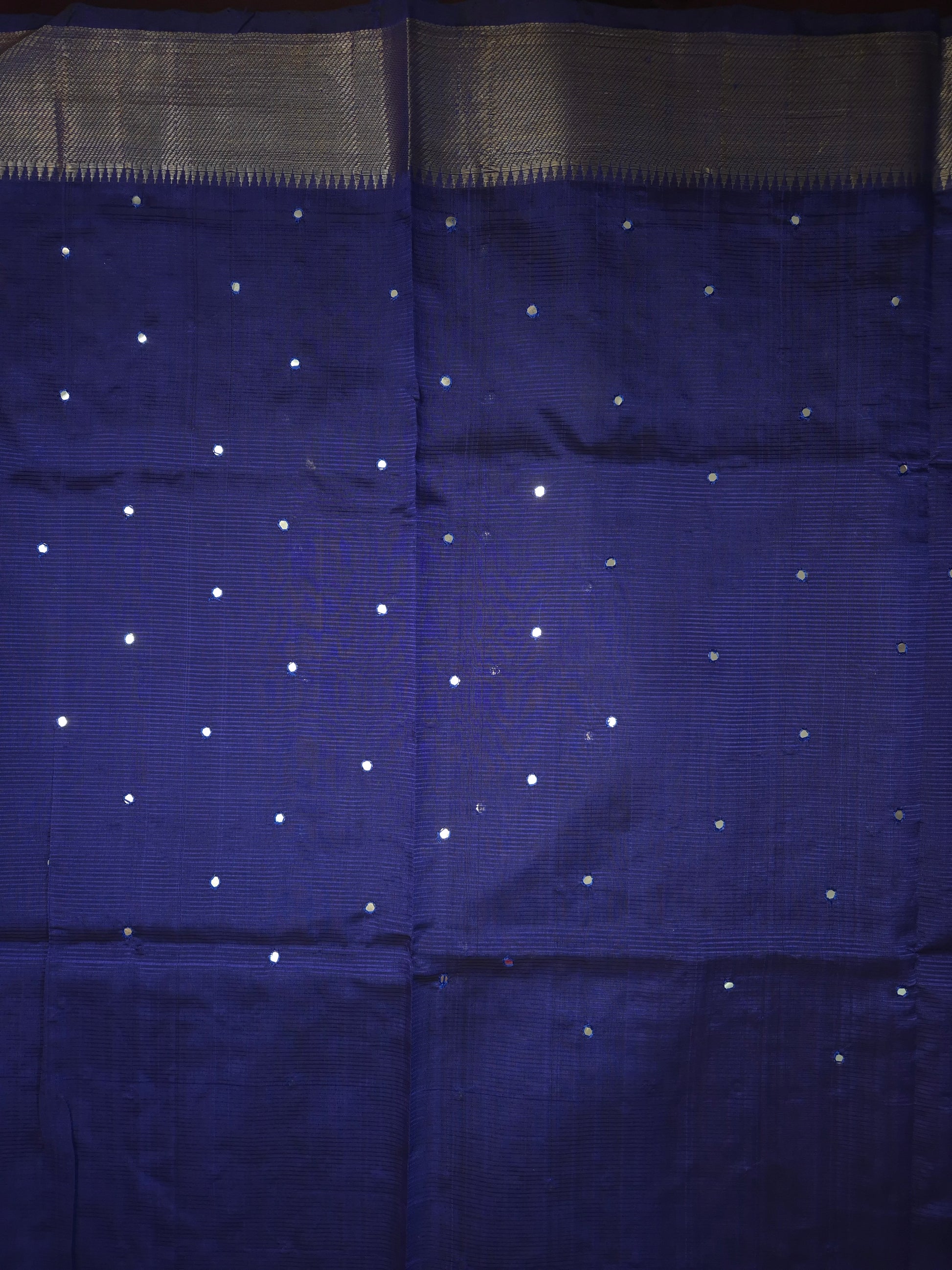 Navy Blue Mangalgiri Pattu Saree with Mirror work