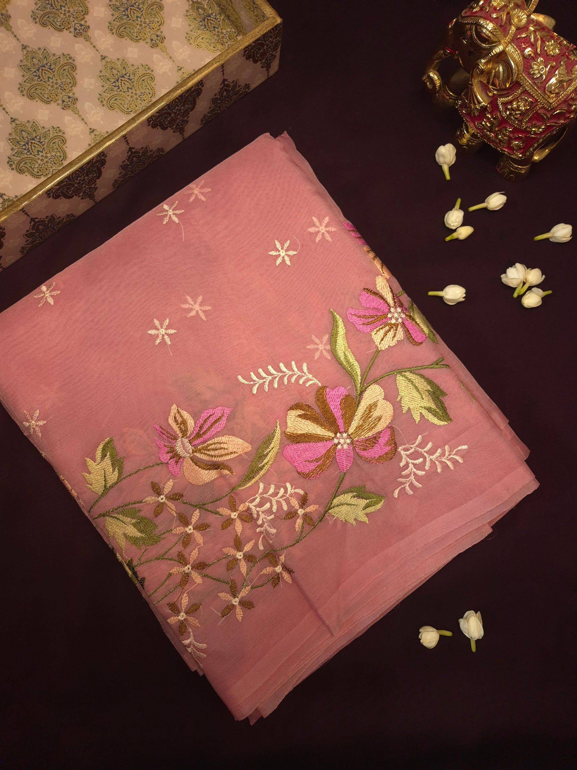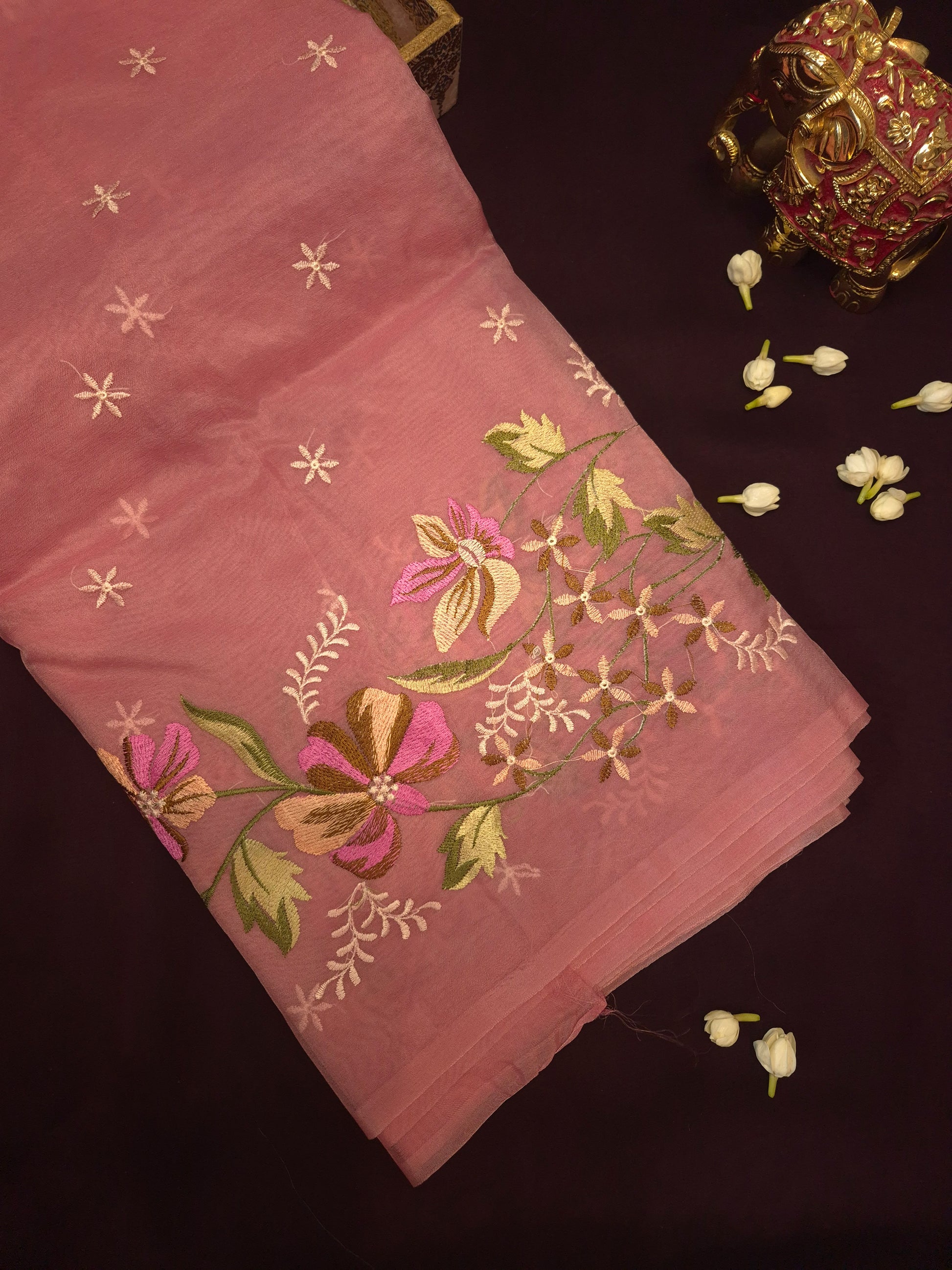 This Pink Banarasi Embroidery Tissue Saree offers a sophisticated look, ideal for professional events and intimate gatherings.